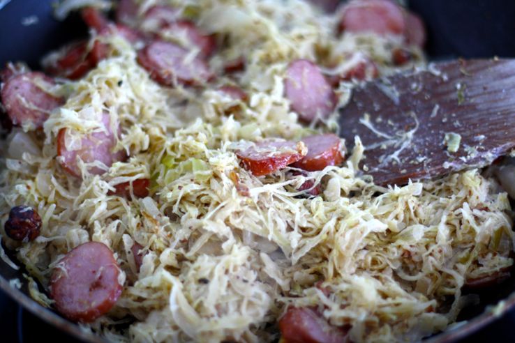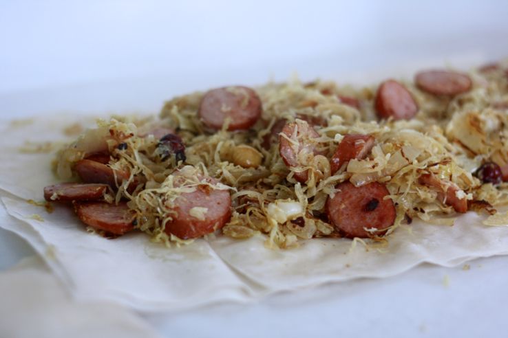 En ik maak dit keer een duurzame zuurkoolstrudel. Vorige week heb ik opnames gehad voor een tv-programma (later meer hierover) waarbij ik blind kaas moest testen. Het ging hier om de smaak van duurzame kazen. Deze kazen waren echter allemaal uit de supermarkt. Tegenwoordig kun je steeds vaker gewoon bij de Albert Heijn duurzame producten kopen. Bijvoorbeeld producten van het huismerk puur&eerlijk biologisch of producten met een keurmerk als Fair Trade Max Havelaar, MSC (duurzaam gevangen vis), Beter Leven en Rainforrest Alliance. Ook Unilever heeft steeds meer duurzame producten in de schappen. Ik let daar eerlijk gezegd niet altijd op, maar door de proeverij ben ik me er weer bewust van geworden. Vandaag dus een voorbeeldje van hoe gemakkelijk je al lekker duurzaam doet. En zonder dat het duur is! De biologische zuurkool is maar 0,79 cent, een bakje biologische crème fraîche nog geen euro en de Unox boeren scharrelrookworst nu 2,09 euro. Geweldig toch?