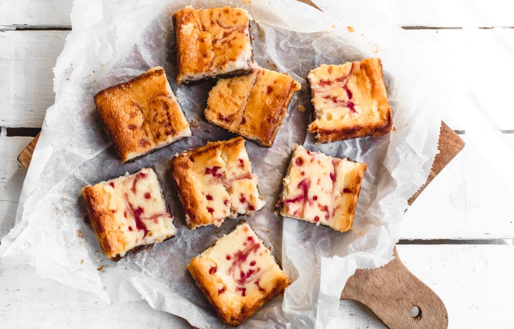 Frambozen-cheesecake bars