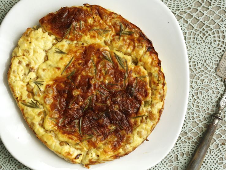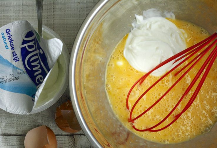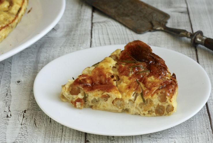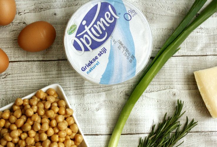 Want allereerst is deze frittata gevuld met kikkererwten. Geweldig, eiwitten ten top, een echte maaltijd en toch nog steeds heel gezond. Daarnaast heb ik een paar eitjes gecombineerd met 6 eetlepels Griekse yoghurt, waardoor hij lekker luchtig en romig is. En tot slot: ik heb ‘m gemaakt in een taartvorm en gebakken in de oven. Topidee, want zo komt -ie er super mooi uit. Perfect toch? There we go.