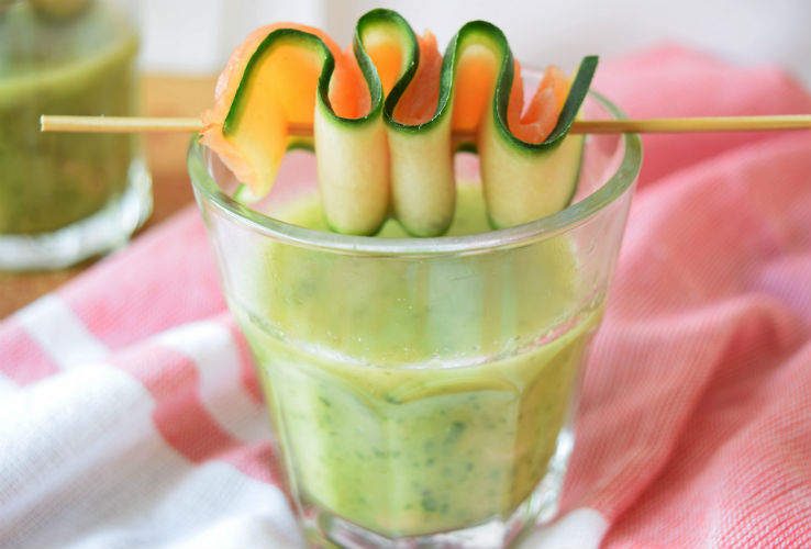 Met dit koude komkommersoepje geef je het diner een speciale zomerse touch. Zie je het al voor je? Lekker buiten eten tijdens een warme zomeravond en dan dit soepje serveren. Genieten to the max! Maak er een mooi spiesje met gerookte zalm bij en jij steelt zeker de show. Komt -ie.