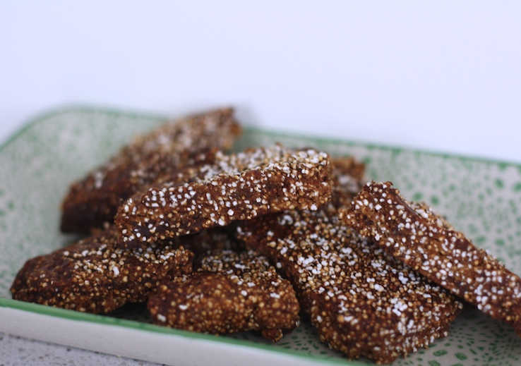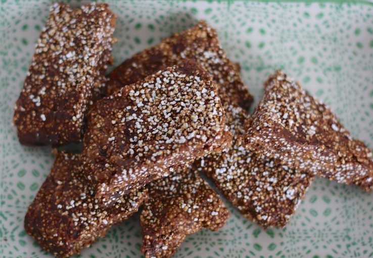 Oké, dit is voorlopig even het laatste recept met amaranth. Maar ik moet het delen, want dat heb ik beloofd in de foodvideo waarin ik amaranth pof. Vandaar, hierbij: het recept voor gepofte amaranth repen met chocolade.