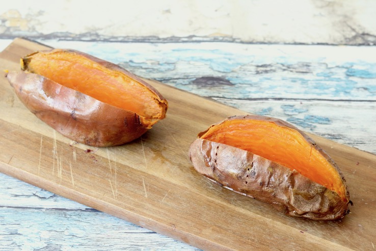 Wat is er nóg beter dan gebakken zoete aardappel? Juist, gepófte zoete aardappel. Vandaag hebben we onze oranje vriend weer in een jasje van aluminiumfolie gestoken en gepoft in de oven. Mmm… dat is zo heerlijk! Heb jij het al eens geprobeerd? We vullen ze dit keer met rucola, uitgebakken parmaham, burrata en balsamicoazijn. En dan krijg je: gepofte zoete aardappel met burrata, een zalige combi als je het ons vraagt. Laten we beginnen!