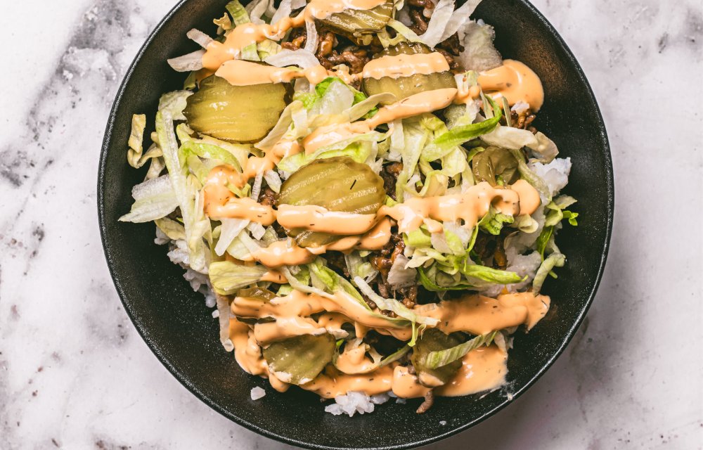 Of je nu een drukke dag hebt gehad, weinig zin hebt om te koken of gewoon trek hebt in iets dat voelt als fastfood, maar dan beter, deze gezonde Big Mac bowl laat je niet in de steek. Plus: je kunt ‘m makkelijk naar eigen smaak aanpassen. Zin in een beetje pit? Gooi er wat jalapeño bij. Liever meer veggies? Hello tomaat en ui.