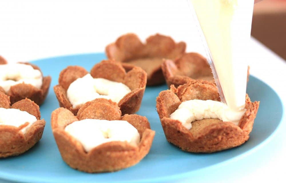 Hier word je toch spontaan vrolijk van? Deze kidsproof traktatie is helemaal niet moeilijk om te maken, maar ziet er wel super feestelijk uit. Het deeg is van speltbloem en de vulling bestaat uit een soort homemade abrikozenjam en slagroom. Oké, slagroom is natuurlijk niet helemaal healthy, maar in combinatie met de andere verantwoorde ingrediënten vinden we dat het best een keer mag ;).