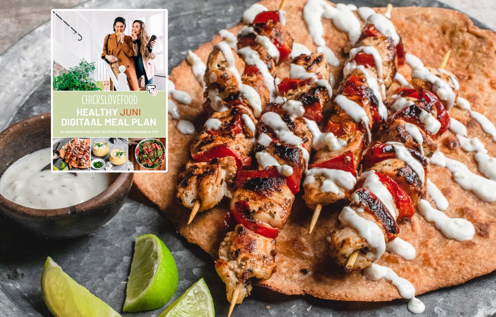 Gezonde kipsouvlaki met zelfgemaakt platbrood met 6 ingrediënten
