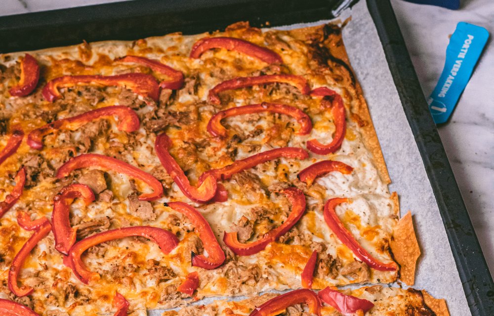 Het fijne aan deze plaattaart is dat de oven eigenlijk al het werk voor je doet. Jij hoeft ’m alleen even samen te stellen. Je roert de Griekse yoghurt los met de cajunkruiden, smeert dat uit over het filodeeg en verdeelt daar de tonijn over. Paprika erbij voor wat crunch, een handje cheddar voor die tuna melt en klaar ben je al bijna. Schuif de hele plaattaart de oven in, wacht tot alles goudbruin en knapperig is en tadaaa: een gezonde comfortmaaltijd waar je geen seconde stress van hebt gehad.