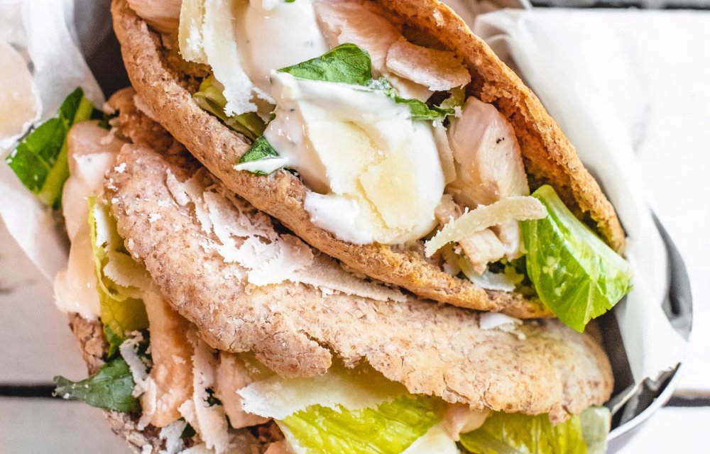 Gezondere caesar salade pita’s met 6 ingrediënten