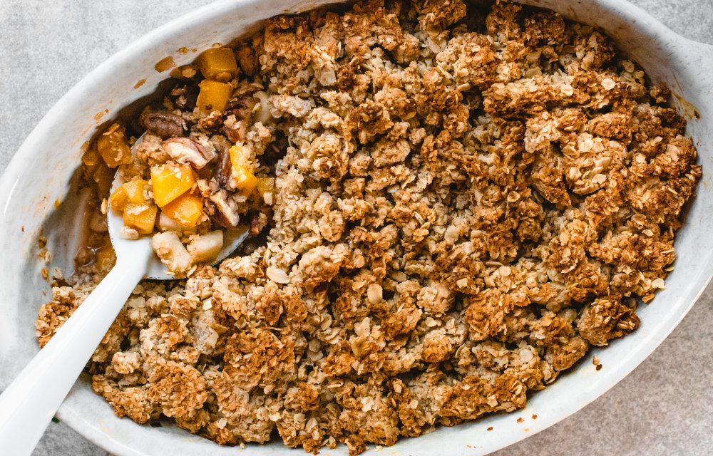 Ontbijten saai? Nee joh! Met deze gezondere crumble met tropisch fruit schotel je jezelf een heerlijk begin van de dag voor. Maak ‘m van tevoren en schuif ‘m ‘s ochtends alleen nog even in de oven.