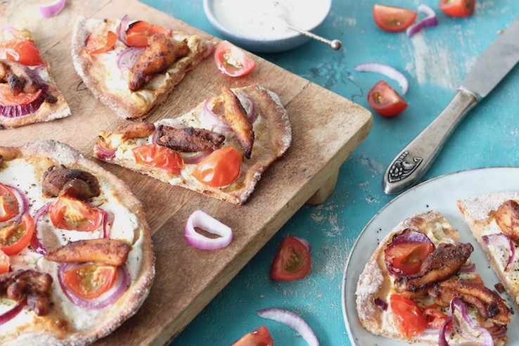 Twee klassiekers die samen de ultieme guilty pleasure vormen: pizza én shoarma. Heerlijk voor af en toe, maar een gezondere pizza met kipshoarma kun je gerust wat vaker op het menu zetten! Deze verantwoorde pizza heeft namelijk een bodem van kwark en speltmeel en een topping van ui, tomaat en kipfilet.