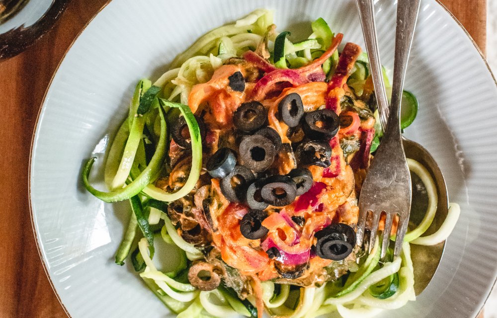 We houden van courgetti en zijn dol op de Griekse keuken. Je voelt ‘m al aankomen, hè? Tel dat bij elkaar op en je krijgt deze heerlijke Griekse courgetti met feta, spinazie en zwarte olijven.