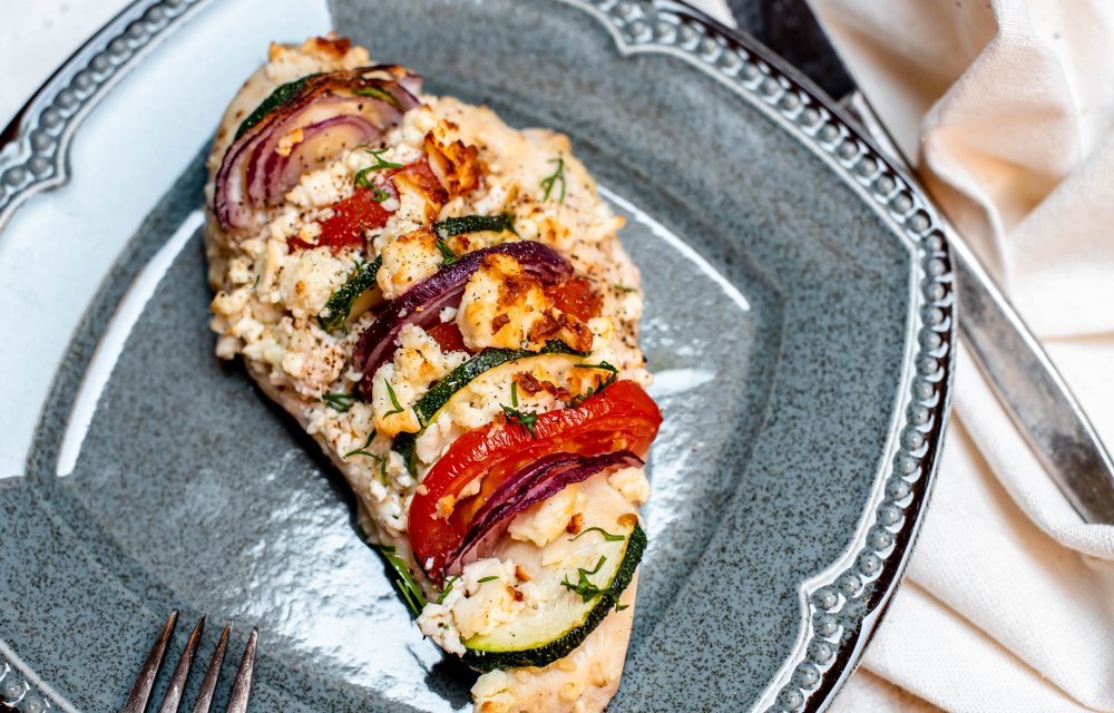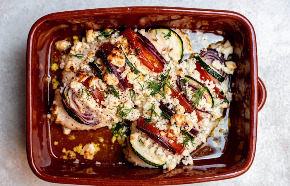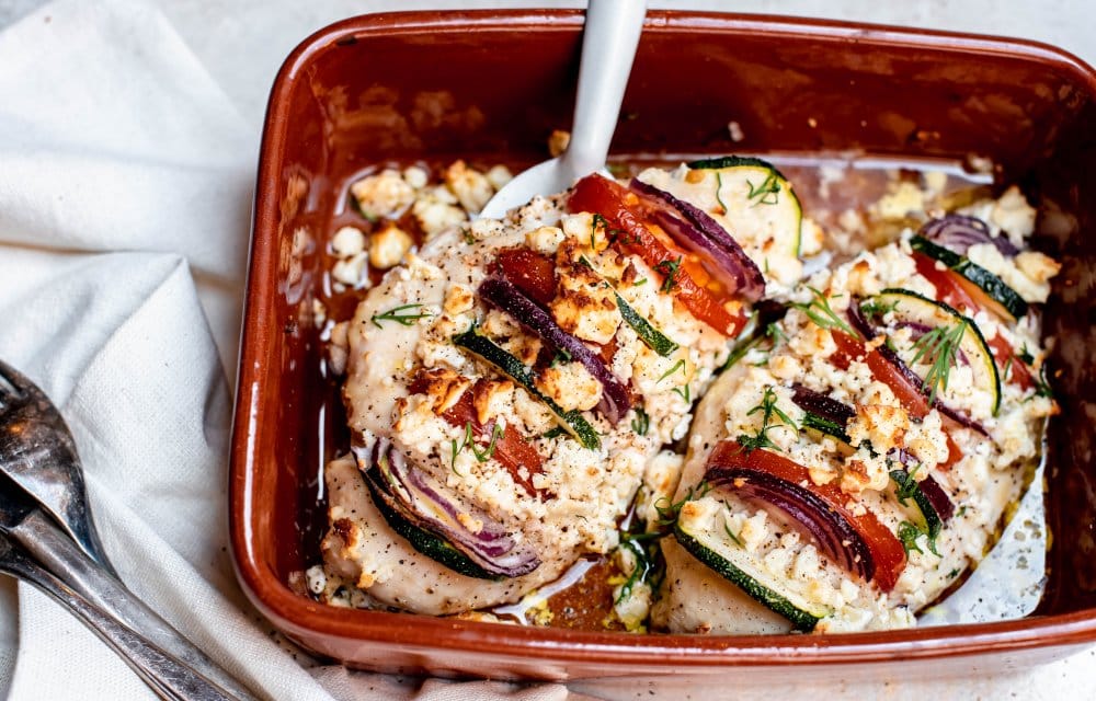 Als je nog op zoek bent naar een leuk gerecht voor vanavond, dan is deze Griekse gevulde kipfilet een prima optie. ‘t Is namelijk een leuk en bovenal smaakvol gerecht. En nog gezond ook, want je vult de kip met flink wat groente, waaronder tomaat en courgette. De feta en rode ui geven de kipfilet een Grieks tintje, heerlijk! Enne, je kunt dit gerecht ook heel makkelijk vega maken. Vervang dan de kipfilets door zoete aardappel.