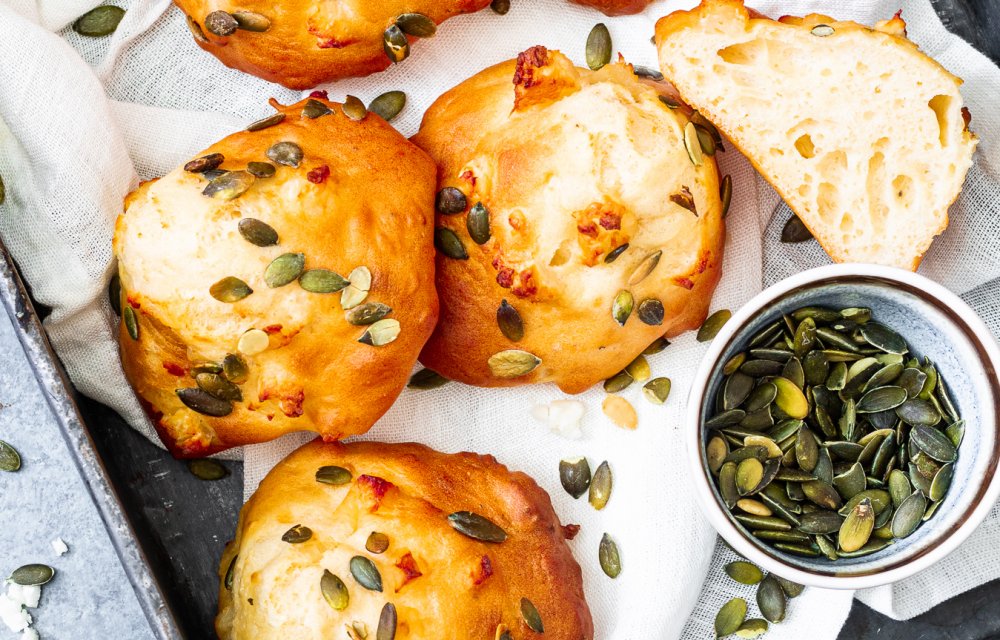 Deze Griekse hartige yoghurtbollen zijn heerlijk zacht, waardoor je er de hele dag van wil blijven eten. En ook fijn: het deeg voor deze bollen hoeft niet te rijzen! (Ideaal dus als je weinig geduld – of tijd – hebt!)