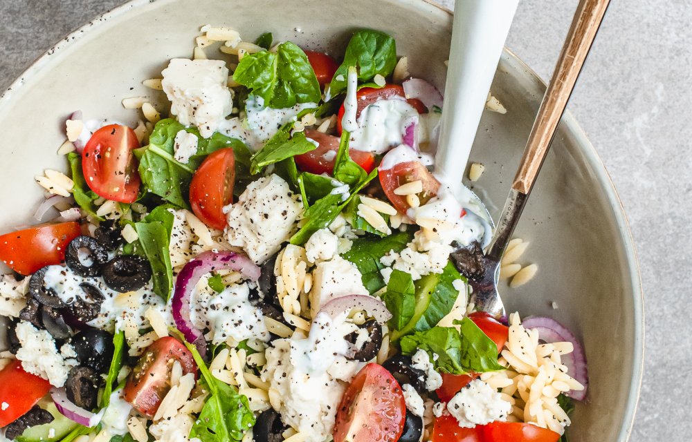 We love de Griekse combinatie van feta, zwarte olijven en tzatziki. In dit gerecht verwerken wij dan ook al deze ingrediënten tot een healthy Griekse orzosalade. De orzo zorgt ervoor dat de salade niet alleen lekker is, maar ook nog eens goed vult. Ook fijn: hij staat binnen een kwartiertje op tafel.