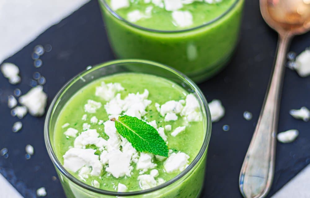 Een nieuwe, groene variant op onze gazpacho. Een heerlijke, koude soep voor de warme zomerdagen! We maken deze groene gazpacho met avocado, komkommer, munt en wat feta on top!