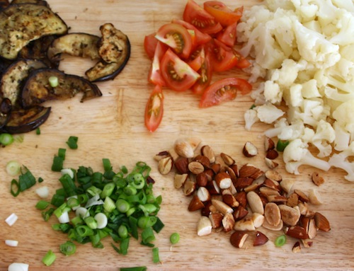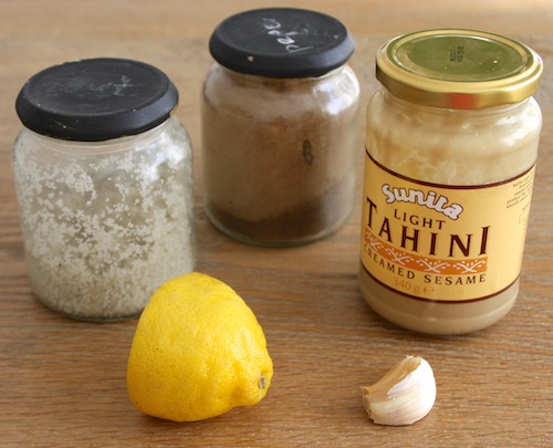 Kook en/of grill je favo groenten, rooster wat amandelen en maak de tahini-dressing. Succes verzekerd!