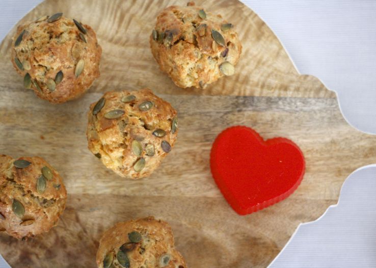 Love is in the air, want het is Valentijn! En of je nou wel een liefje hebt of niet, of je nu wel iets met Valentijn hebt of niet, je bent sowieso in love met food, anders had je dit niet gelezen 🙂 Dus hierbij van mij voor jou heeerlijke kaasmuffins in de vorm van een hartje!