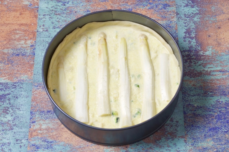 Geen lente zonder witte asperges! Met dit witte goud maakten wij deze romige hartige taart met courgette, bosuien en Parmezaanse kaas. Een lekkere en voedzame maaltijd!