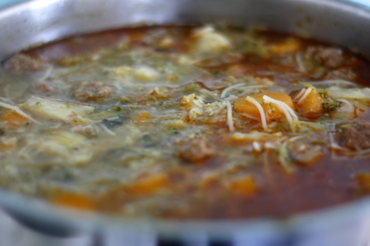 Mijn doel was om echt vanaf nul te beginnen en zonder bouillonblokjes allereerst mijn eigen groentenbouillon te trekken. Ui, wortel, knolselderij, laurier. De hele reutemeteut zette ik aan maar na een uur was het water nog steeds heel flauw. Misschien te weinig zout en ik was knoflook vergeten. Maar ik vond het zo geen soepsmaak hebben dat ik toch koos voor een alternatief met bouillonblokje. En dat smaakte echt zó oldschool lekker. Deze komt dus vaker op tafel. En hierbij dan wel gelijk een oproep aan mensen die soep zonder bouillonblokje maken: wat is het geheim?? Ow ja, enne ik maak de soep met mihoen, zodat -ie tarwevrij is.