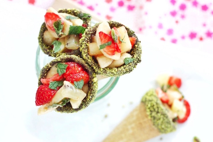 We love ijs en onze kids zijn er ook dol op! Maar wat dacht je van een gezondere variant met fruit? Deze hoorntjes zijn gevuld met aardbei, banaan en kiwi en zien er ook nog eens super leuk uit! Om er helemaal een feestje van te maken hebben we de randjes van de hoorntjes in pure chocolade gedoopt en versierd met nootjes.