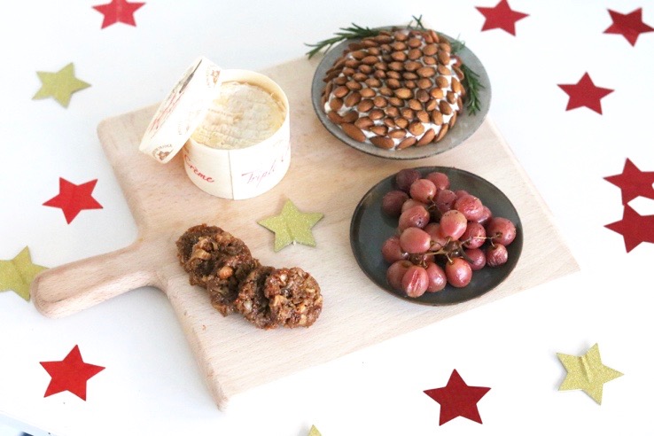 Een goede kaasplank mag volgens ons gewoon niet ontbreken met Kerst. En wij hebben het perfecte recept om je plank nét even wat feestelijker te maken. Wat er precies op ligt? Een mooie dennenappel van amandelen en kaasspread, geroosterde druiven, een Triple Crème kaasje (goddelijk spul) en zelfgemaakt vijgenbrood.