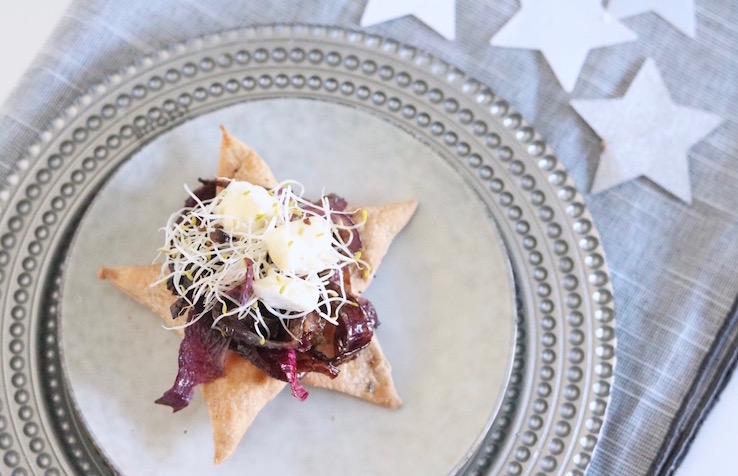 Het CLF 5 or less kerstmenu dus! Onderaan dit artikel vind je de boodschappenlijst voor het hele menu. We trappen vandaag af met een heerlijk voorgerechtje: een kerstster met gekarameliseerde ui, van hartige taartdeeg met alfalfa, camembert, en maanzaad. En simpel dat -ie is! Smullen!