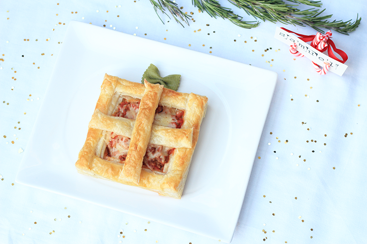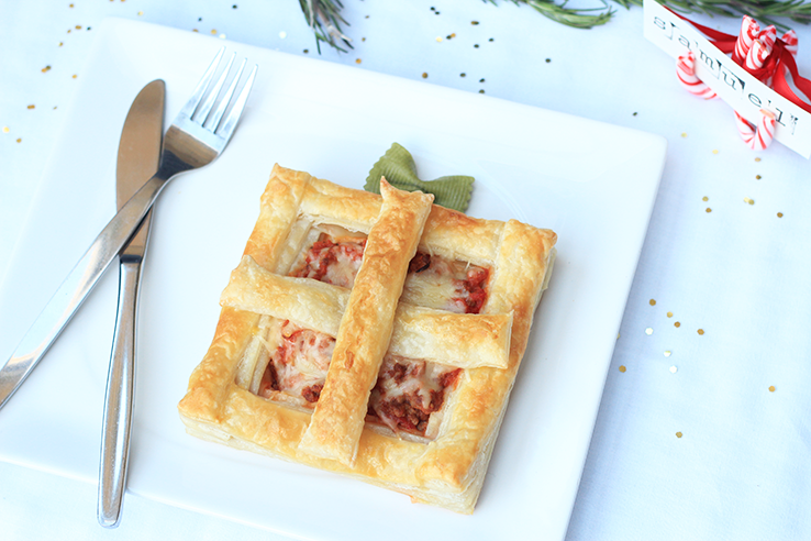 Deze bolognese cadeautjes natuurlijk! Een heerlijk korstje van bladerdeeg met een vulling van bolognese en kaas en een strikje van pasta. En als afsluiter van het menu scoor je zeker extra punten met deze leuke rendier ijsjes.