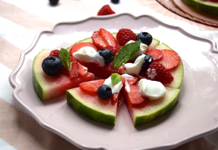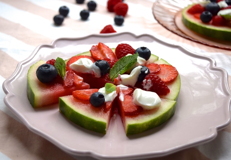 Mijn Albert Heijn had alleen kleine watermeloenen (een soort mini-variant van de gewone watermeloen), je kunt natuurlijk ook één of twee pizza’s maken van grote meloenschijven. Lekker als tussendoortje of als toetje. Hoe dan ook, dit is smullen!