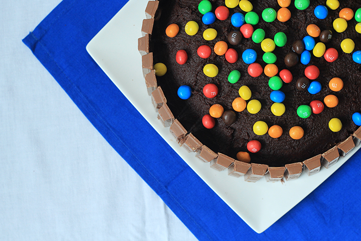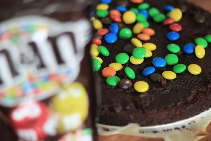 Dit is een taart waarvan ik altijd vond dat ik hem ooit eens gemaakt moest hebben (je kent het wel, zo’n kook/bak-bucketlist-item). Mijn eerste Sinner Sunday is dan ook meteen een échte sinner, maar oh wat is het heerlijk. Een taart met KitKat en M&M’s, mijn favoriete sinners.
