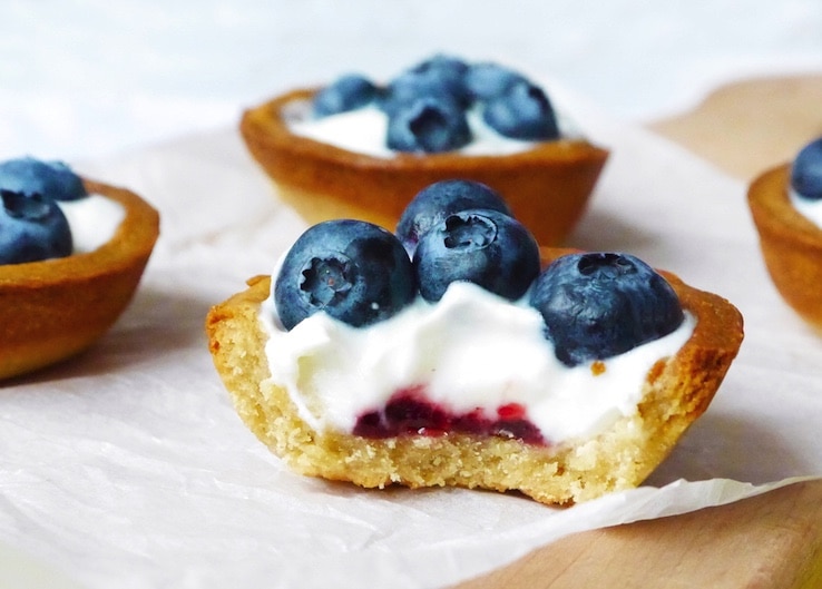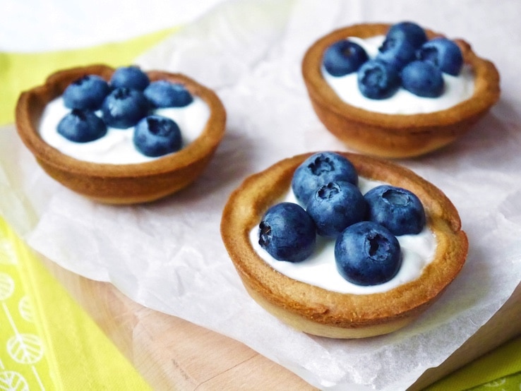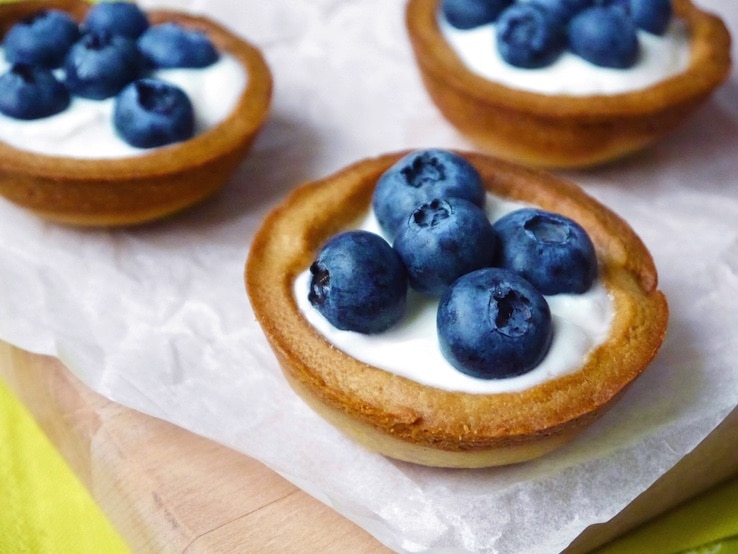 Voor taartjes gebruik je meestal taartdeeg, of een kruimelbodem, maar… vandaag maken we deze kidsproof taartjes van koekbeslag. Super lekker in combinatie met de romige yoghurt en de blauwe bessen. Je kunt ze heel goed samen met je kids maken én opsmullen natuurlijk! 🙂