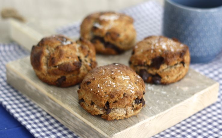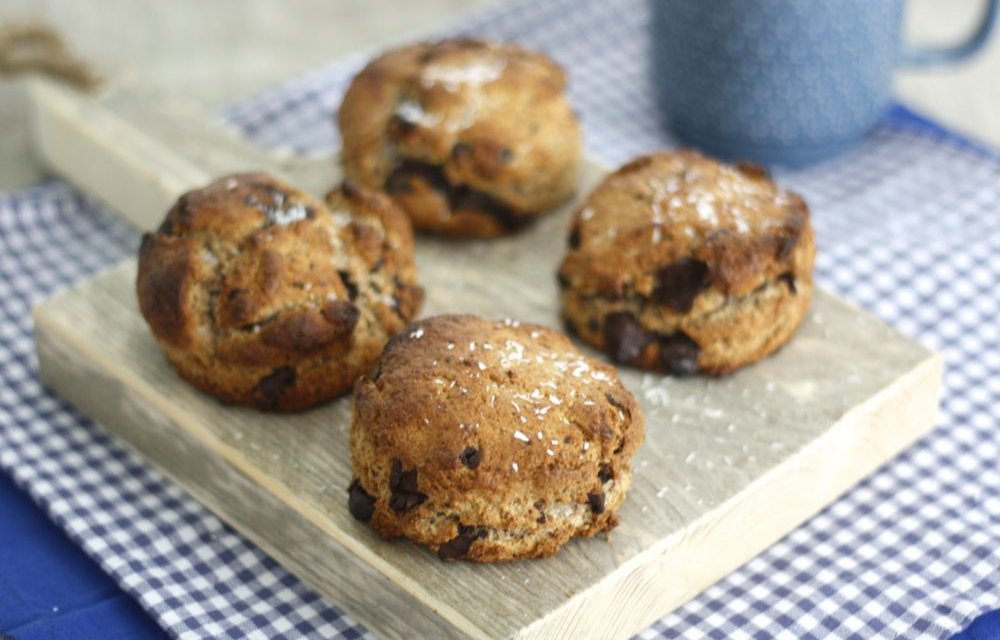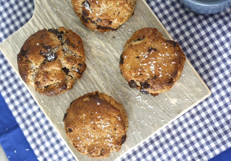 Kokos en wat pure chocolade erdoor en je hebt weer een heel ander soort scone op je bord. Zo lekker, komen ze!
