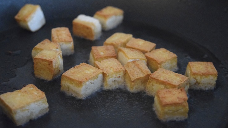 Ik zit in een tofu-fase! Mmmm, eet het ineens iedere week wel een keer. Ik ben net terug van twee weken Hong Kong en Bali, en daar was ook op veel plekken tofu te krijgen. Smullen! Ik weet dat veel mensen gruwelen van tofu, voornamelijk vanwege de textuur. Als je er heel veel vocht uitknijpt, wordt de tofu wat steviger én zuigt -ie de smaken op van waar je de tofu in hebt gedaan, in dit geval in een lekker en mega smaakvol soepie dus.