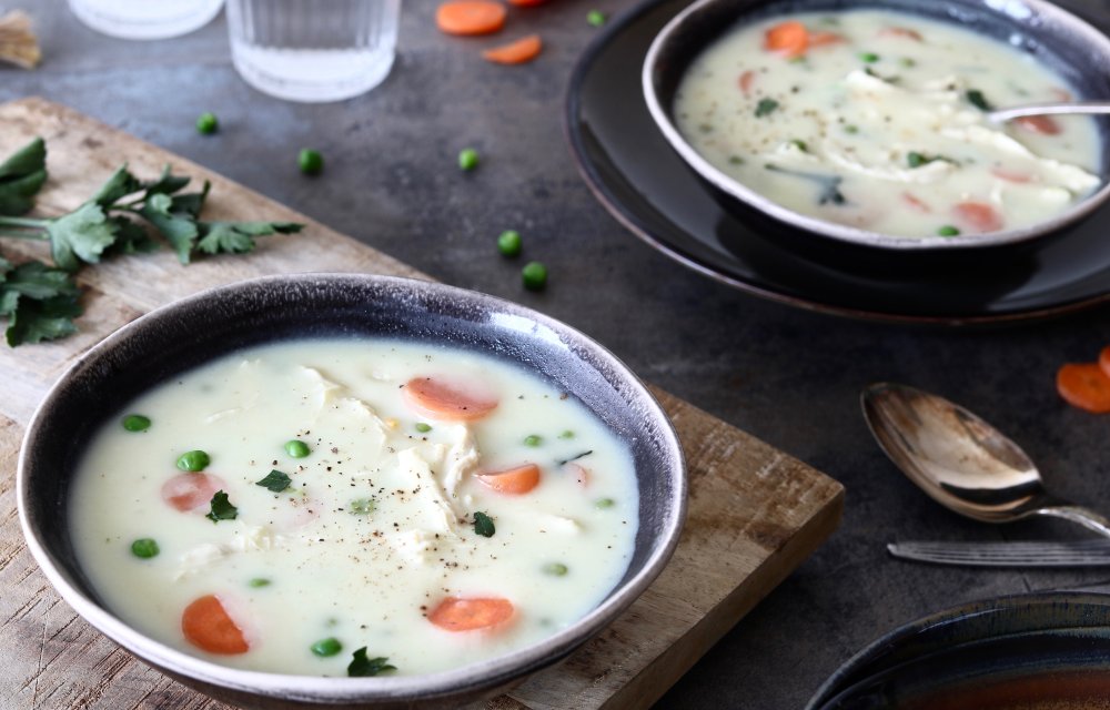 Een echte Hollandse klassieker en een toppertje voor Koningsdag: deze romige Koninginnesoep met pulled chicken, wortels en doperwten. Een smaakvol en feestelijk soepje!