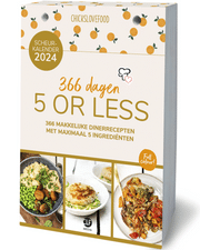 Dit heerlijke recept is 1 van de 366 recepten uit onze scheurkalender 2024. Hierin ontdek je iedere dag een recept voor het avondeten, dat met maar 5 ingrediënten te maken is! Dus een heel jaar lang niet meer die vraag: ‘wat eten we vanavond?’, heerlijk toch?!