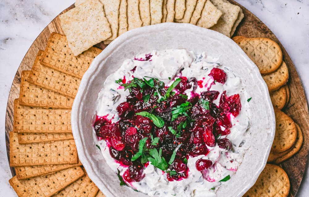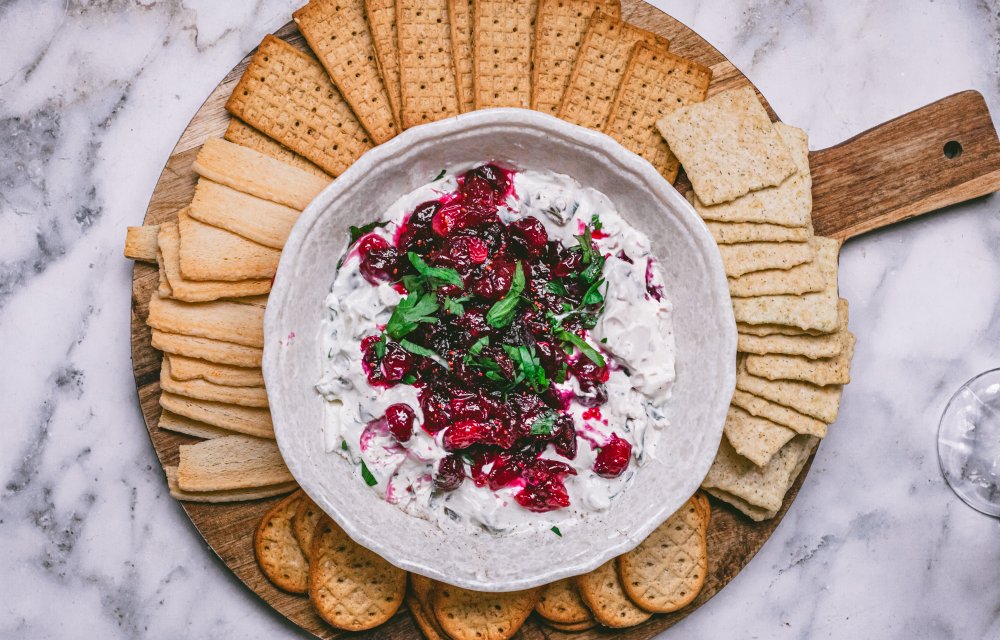 De ingrediëntenlijst is lekker overzichtelijk: romige roomkaas, zoet-zure cranberries, een beetje suiker, jalapeño voor een lichte kick en frisse peterselie. Dat is alles! Je begint met de cranberries: verwarm ze samen met de suiker en een klein scheutje water tot ze openbarsten en een dikke saus vormen. Laat even afkoelen. Ondertussen meng je de roomkaas met fijngehakte jalapeño, peterselie en een snuf peper en zout. Verdeel het roomkaasmengsel over een schaaltje, lepel de cranberrysaus erover en maak af met wat extra peterselie. YUM! Ziet er meteen superfeestelijk uit. Serveer met toastjes, stokbrood of crackers en je hebt in no time een perfect kersthapje.