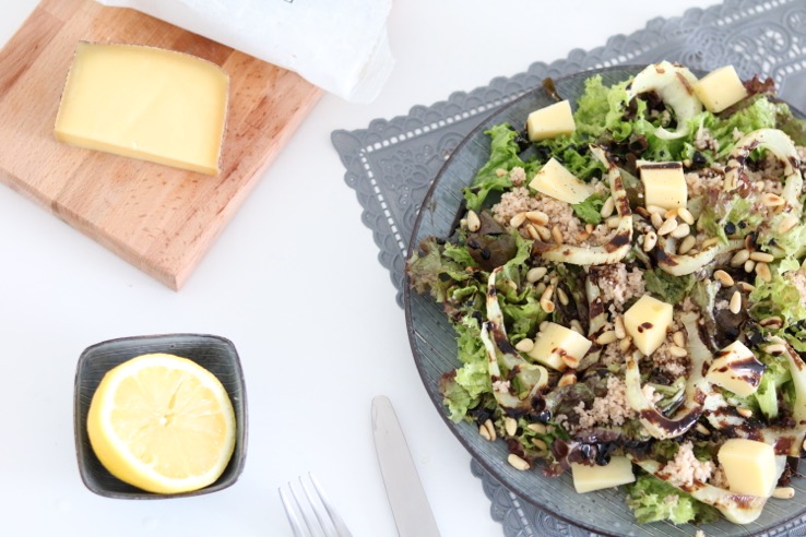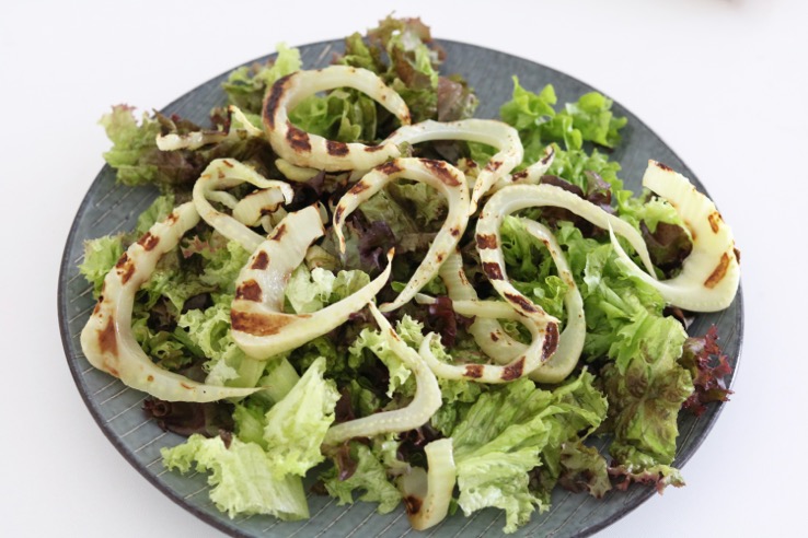 Eikenbladsla heeft een beetje een nootachtige smaak en dat gecombineerd met de intense kaas van Zwitserse kaas en de gegrilde venkel maken deze salade helemaal herfstproof.