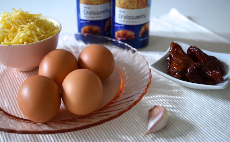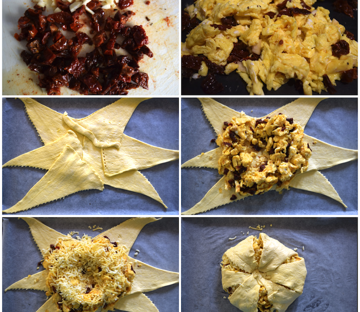 Dit brood van croissantdeeg vul je met ei, wat kaas en een zongedroogd tomaatje voor de zoute touch. Heerlijk! Enne, echt heel machtig, na twee stukjes zit je al best wel vol. Ik heb een klein bakplaatje, en daarom past er maar een brood op van 6 stukjes, maar als je een grotere bakplaat hebt kun je 8 velletjes croissantdeeg neerleggen, dan is je brood nog iets dichter zeg maar. Dan heb je wel twee blikjes nodig, in één blikje zitten meestal 6 deegplakjes. Hier komt -ie, zet deze maar bij je favorieten!