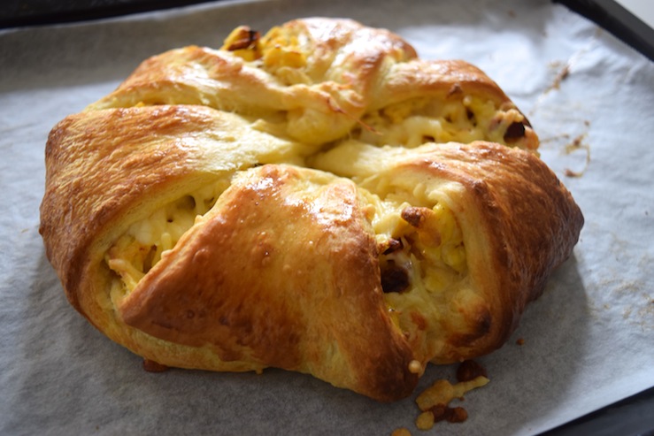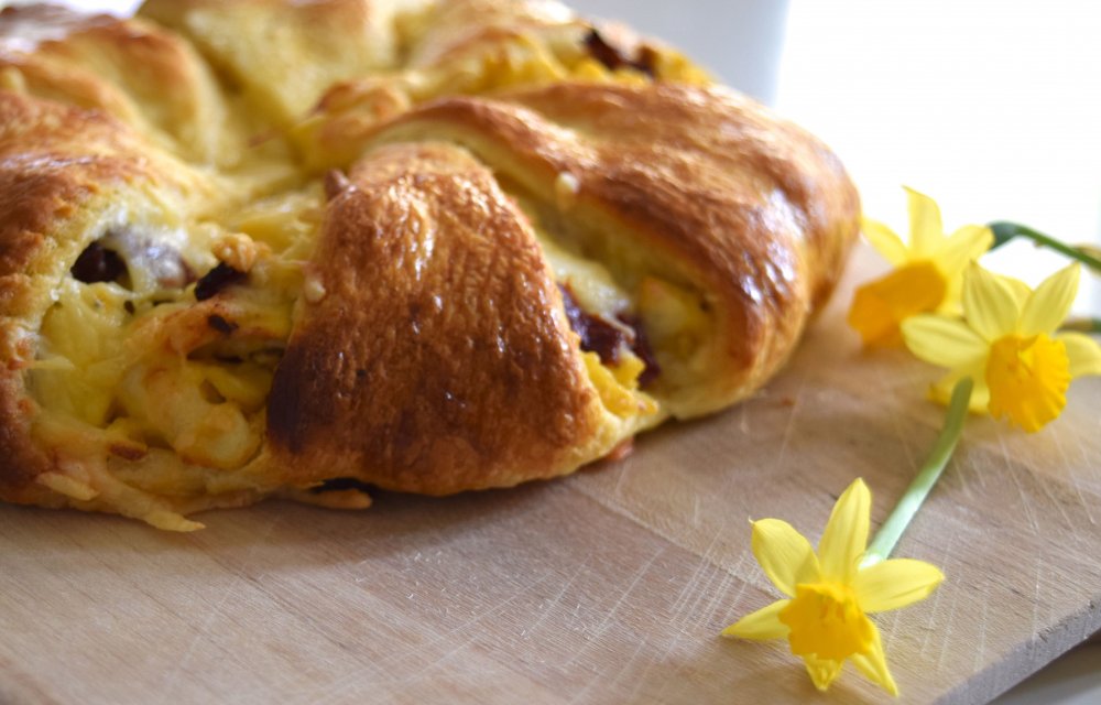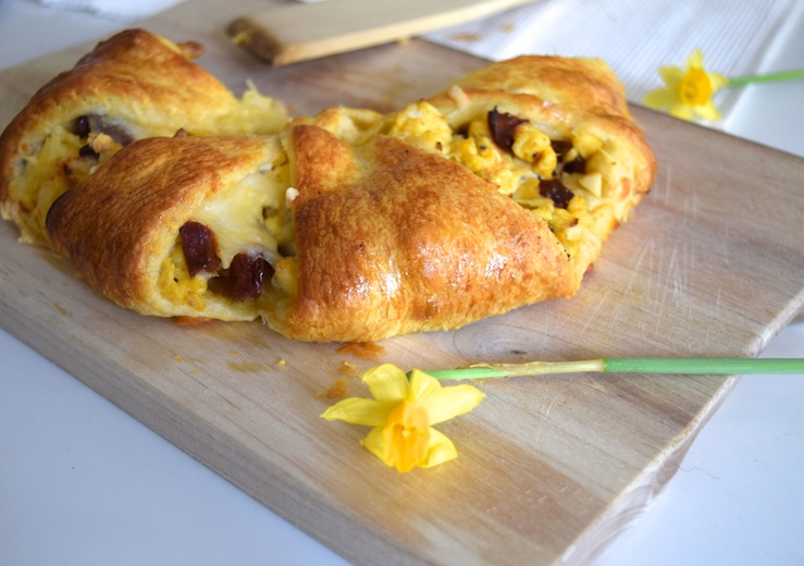 Ik ben heel blij dat ik dit breekbrood ontdekt heb, en ik hoop jullie ook nadat je deze posting hebt gelezen. Het is echt héél makkelijk te maken, terwijl het er best wel spectaculair uitziet. Het geheim? Croissantdeeg. Okay, da’s niet het meest gezonde product in de supermarkt, maar Pasen valt wel een beetje onder Sinner Sunday, toch?