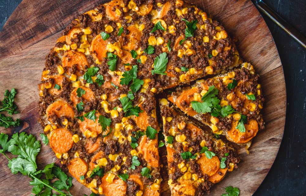 Met deze Mexicaanse zoete-aardappeltaart geven we een originele twist aan de zoete-aardappeltaart. Natuurlijk vinden we Hollandse kost op z’n tijd heerlijk! Maar we geven ook graag een eigen draai aan gerechten. Dit keer maken we dus een Mexicaanse hartige taart van onder meer zoete aardappel, maïs, vegetarisch gehakt en eieren.