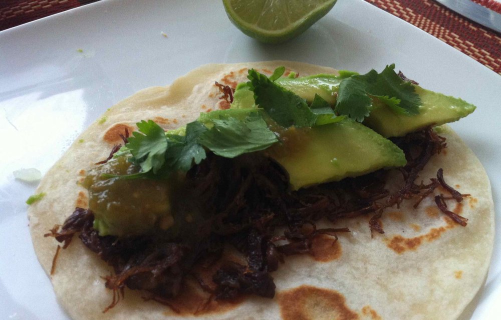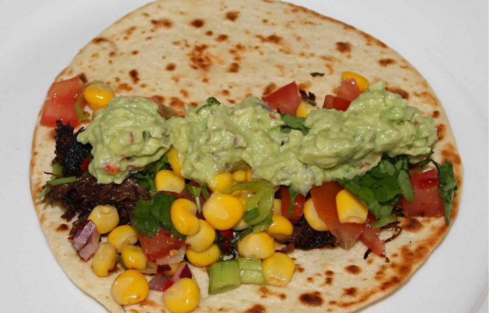 Dit is ultiem genieten: tortilla met draadjesvlees, salsa en guacamole!