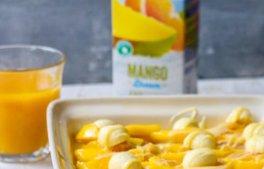 Enne, natuurlijk gaat er in een échte mimosa ook bubbelwijn, dat doen we in dit dessert niet, we laten ‘m lekker alcoholvrij. Maar die heerlijke sinaasappelsmaak is dus absoluut wel present dankzij het fruitsap van CoolBest! Inclusief mango als extra fruitige toevoeging, en jep, dat maakt ‘m extra lekker. Verder maken we dit Paastoetje met zachte sinaasappelkoekjes, banketbakkersroom, een heerlijk mango-sinaasappelglazuur, lekker vers fruit (sinaasappel en mango natuurlijk!), witte chocolade-eitjes en een witte choco drizzle! Écht een ideaal, fruitig Paastoetje dus. Of voor iedere andere dag ;). Enne, wat je als drankje bij de Paasbrunch serveert, náást deze mimosa tiramisu met mango? Een glas CoolBest Mango Dream natuurlijk, wat dacht je dan ;-).