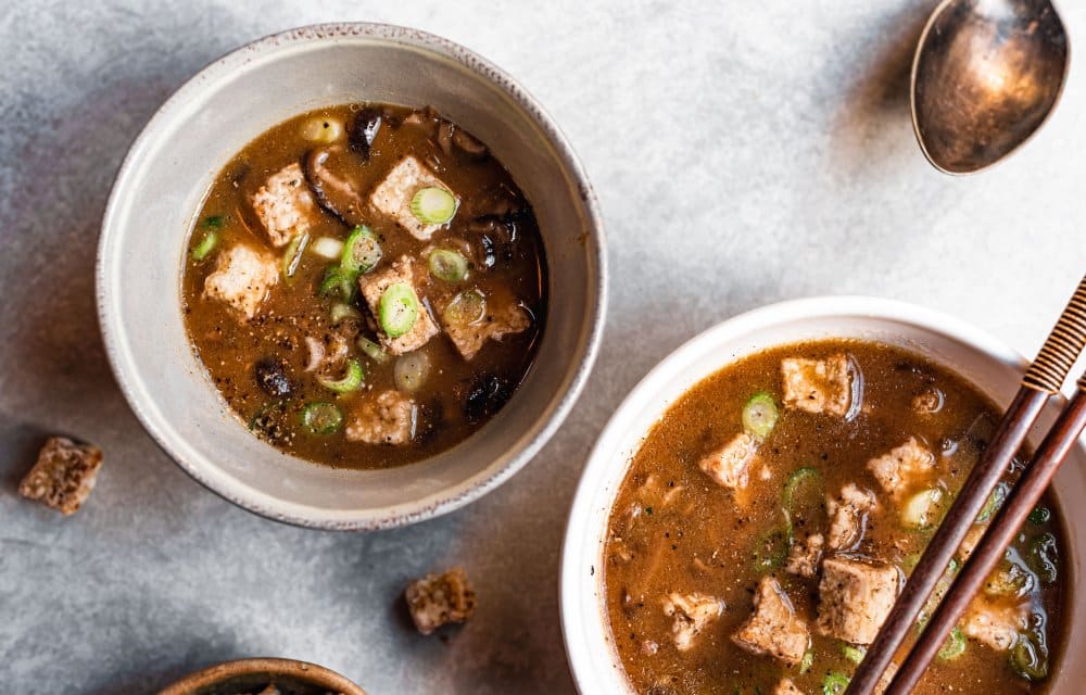 Vraag je je af hoe ‘umami’ smaakt? Proef dan snel deze misosoep met krokante tofu met 6 ingrediënten! Umami is de vijfde, minder bekende, basissmaak die vaak wordt beschreven als hartig en vlezig. De shiitake en de miso in dit recept zijn vaak genoemde voorbeelden van deze smaak en maken van deze soep een echte umami smaakexplosie!