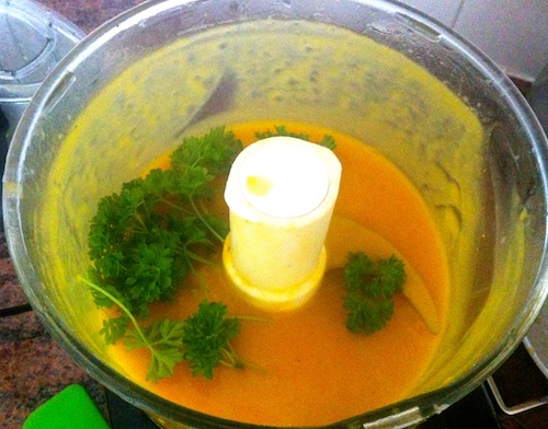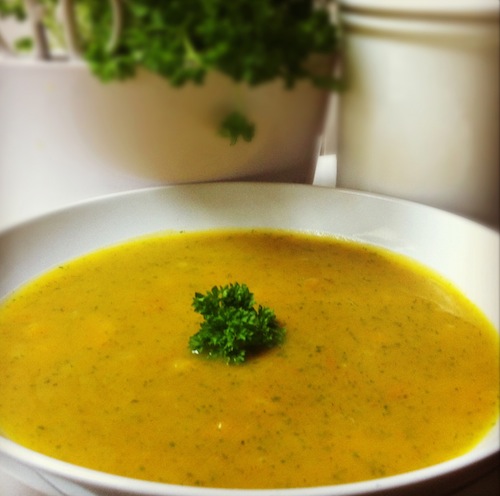 Pompoensoep met een fris tintje door de toegevoegde peterselie. Makkelijk, snel en gezond!