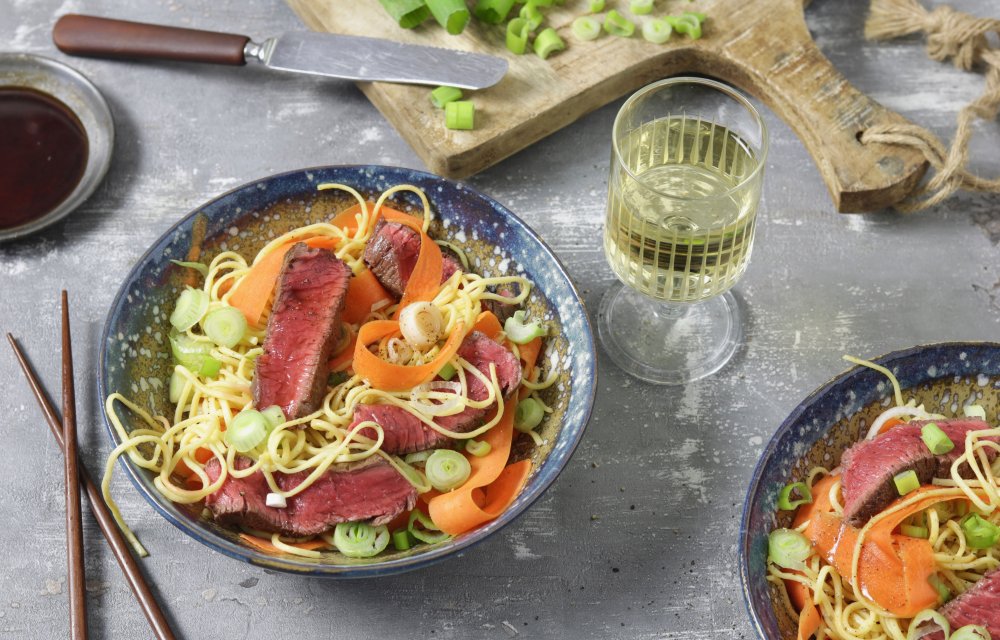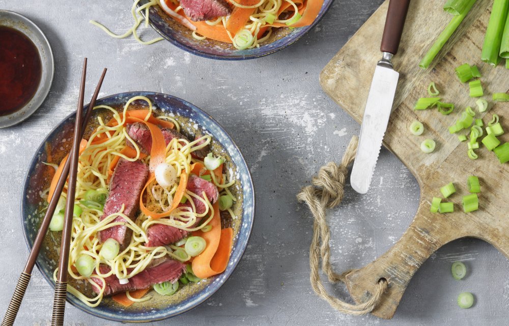 Misschien denk je er niet zo snel aan: een salade van noedels. De eiernoedels in combinatie met bosuitjes, biefstuk en sojasaus geven dit recept een Aziatische twist. Waar wacht je nog op? Let’s get started!