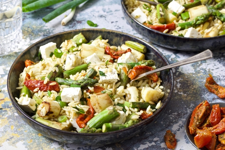 Houd je van asperges? Dan moet je deze (vega) orzo proberen! Super smaakvol door de combinatie van zongedroogde tomaat, feta, bosui en basilicum. Binnen 20 minuten staat -ie op tafel!