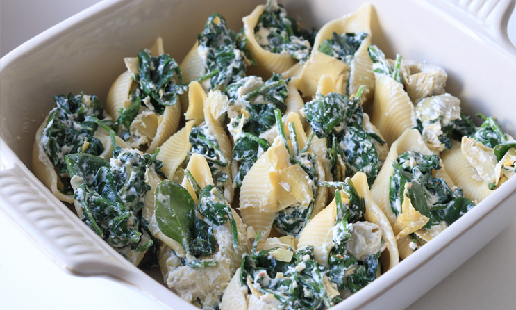 Dit heerlijke recept is snel gemaakt én ziet er net iets specialer uit dan gewone pasta. Je maakt het mengsel voor de vulling lekker snel met maar vier ingrediënten. Daarna vul je de schelpen en laat je de oven de rest doen. Smullen maar!