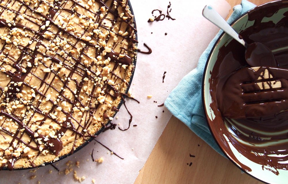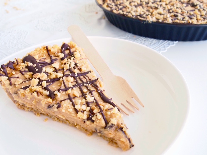 Pindakaas, we zijn er gek op en maakten er onder andere al deze Pindakaaskoekjes, Skinny pindarepen en No bake Snickers cookies mee. Waarom we er nog nooit eerder een taart van hebben gemaakt was ons dan ook een groot raadsel. Dus besloten we er direct werk van te maken en zie hier: onze no-bake peanut butter pie met pure chocolade. Zondiger en smeuïger krijg je het niet!