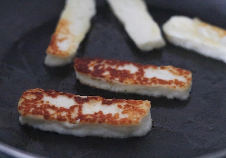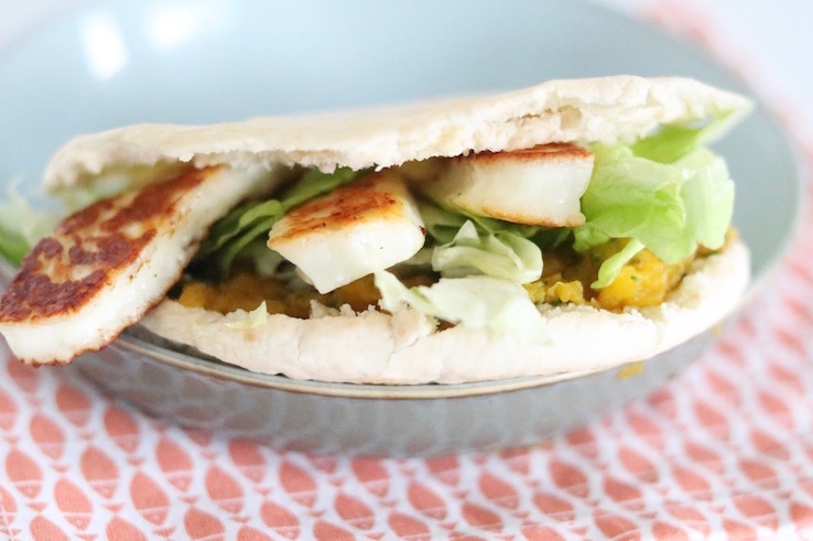 Pita’s met pompoenpuree en halloumi