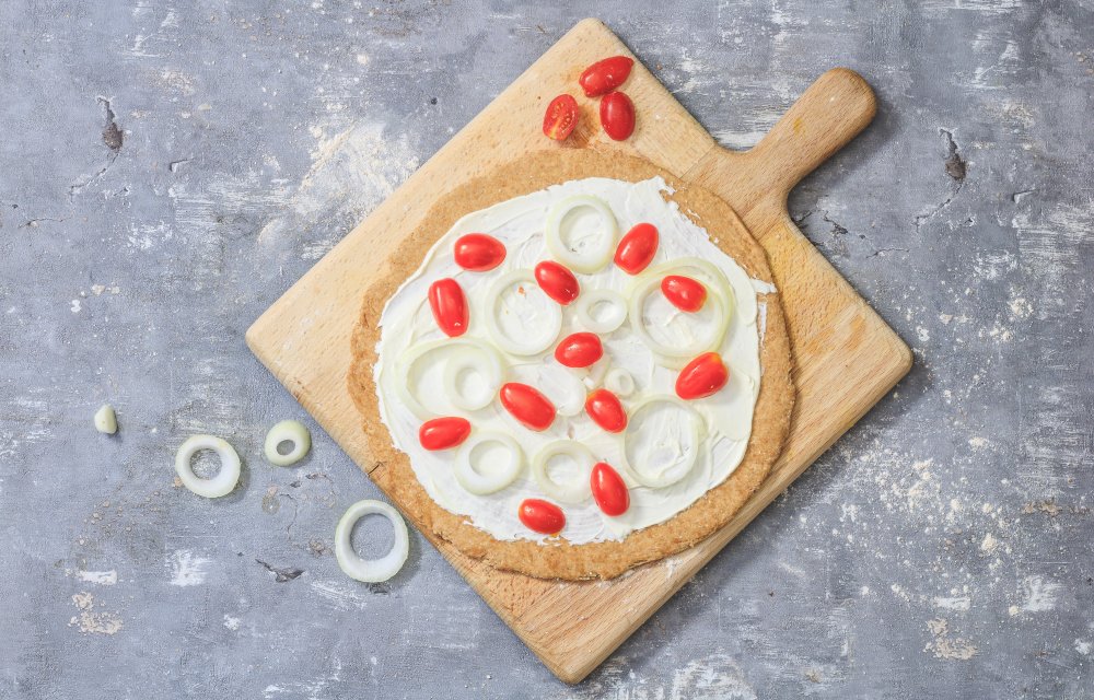 Een pizza bianca maken is super easy. Je vervangt simpelweg de tomatensaus door crème fraîche. En voor het echte Italiaanse gevoel laten we je hier zien hoe je je eigen volkorenpizzadeeg maakt.  Liever geen volkorenbodem? Vervang dan het tarwemeel door bloem. Buon appetito!