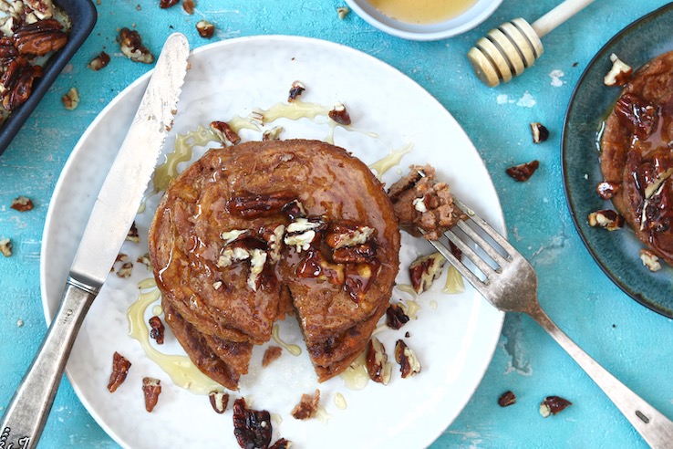 Pumpkin spice latte, pompoentaart, je kunt van alles maken met pompoen. Daarom bij deze… pancakes van pompoen! Heerlijk zoet door de honing en crunchy dankzij de pecannoten. En ze zijn ook nog eens best wel gezond!