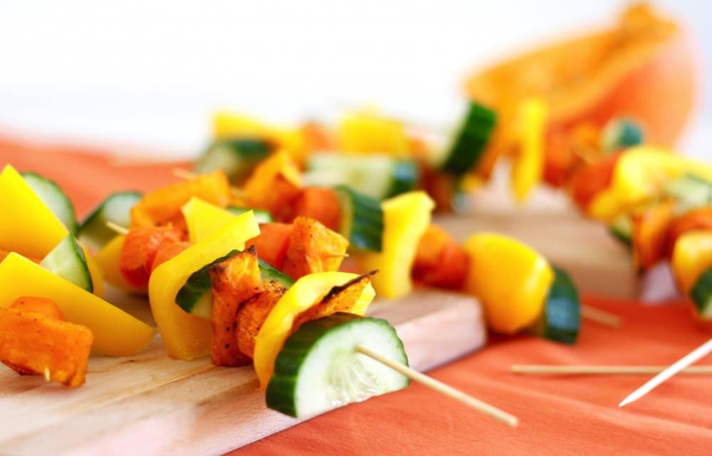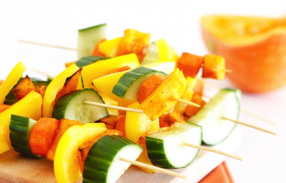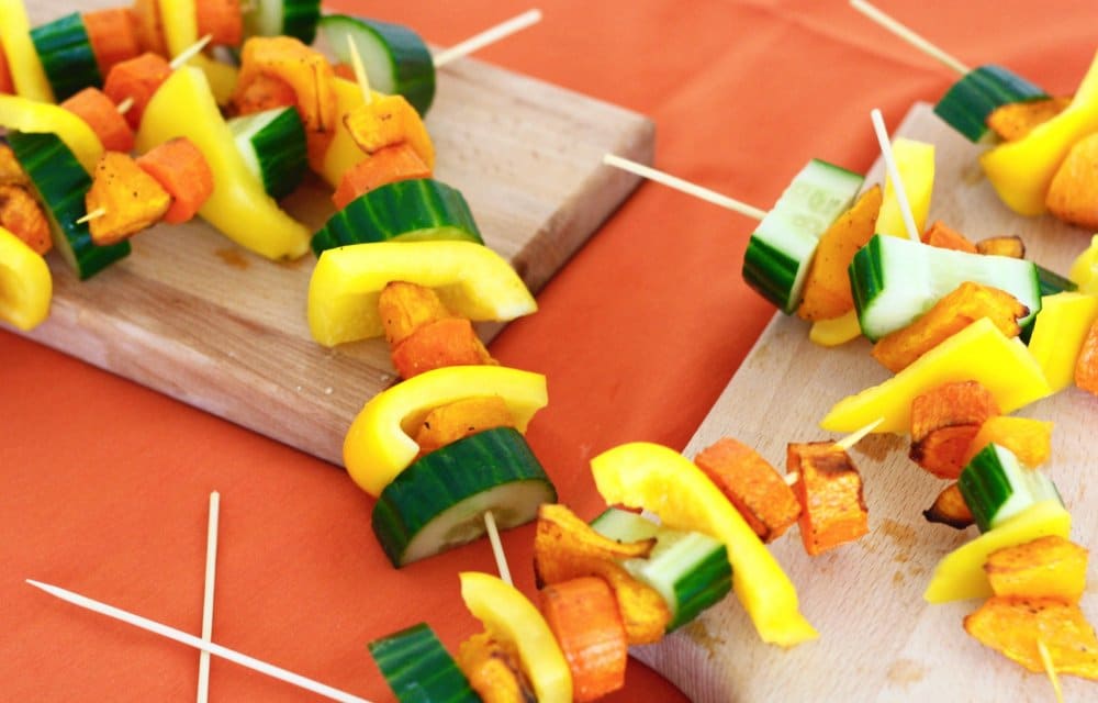 Deze feestelijke groentenprikkers hebben we bedacht voor onze kids. Want iets dat er zo leuk uitziet moet haast wel lekker zijn, toch? 😉 Deze prikkers met pompoen, komkommer, paprika en wortel zijn niet alleen ideaal om je kids meer groente te laten eten, ze kunnen ook heel goed door als healthy traktatie voor op school of tijdens een kinderfeestje.